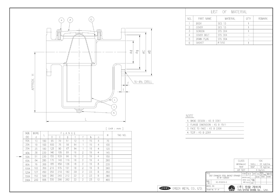JIS 10K용 BUCKET STRAINER 입니다. SCREEN : #60 (SUS304) 주기적인 STRAINER 청소 및 교체가능