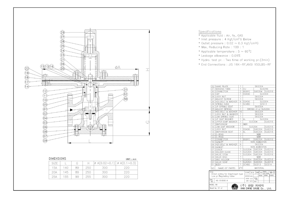 JIS 10K 용 PRESSURE REGULATING VALVE 입니다.